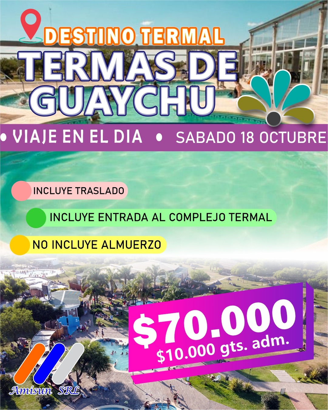 TODAS LAS SALIDAS Facebook Instagram Whatsapp LA SOÑADA – 21 DE SEPTIEMBRE TERMAS DE CONCEPCIÓN – 27 DE SEPTIEMBRE URDINARRAIN – 4 DE OCTUBRE URIBELARREA – 11 DE OCTUBRE TERMAS DE GUAYCHU – 18 DE OCTUBRE TIGRE – 25 DE OCTUBRE TERMAS DE CONCORDIA – 1 DE NOVIEMBRE LA SOÑADA – 9 DE NOVIEMBRE TANDIL – 15 DE NOVIEMBRE FEDERACIÓN – 22 DE NOVIEMBRE LUJAN Y NAVARRO – 29 DE NOVIEMBRE MAR DEL PLATA – 6 DE DICIEMBRE WHATSAPP CONTACTO estamos en:🟠MORENO 647 - QUILMES🔵AVENIDA MITRE 555 BERAZATEGUI Facebook Instagram Whatsapp